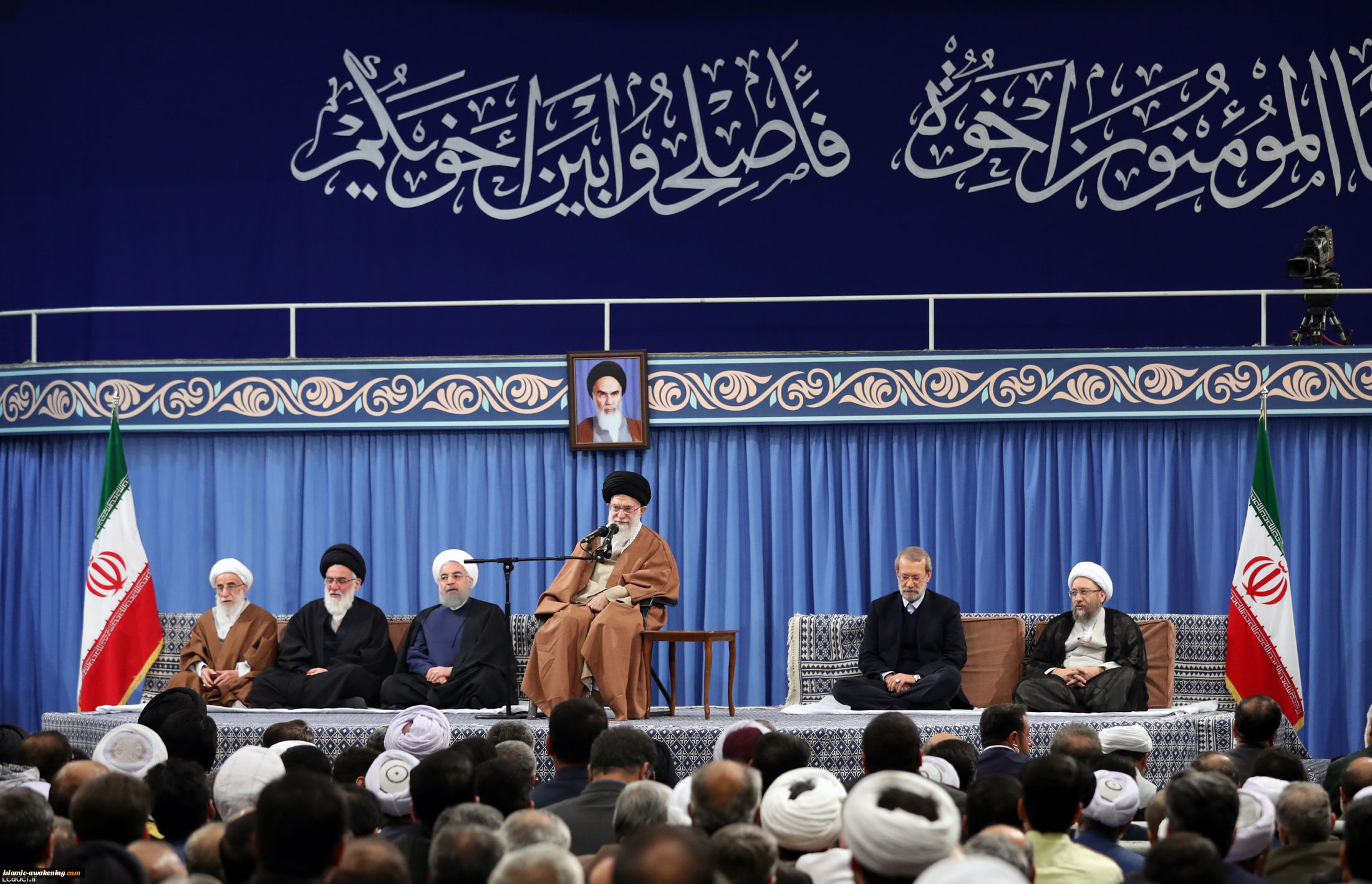 وفي مستهل كلمته أشار قائد الثورة الإسلامية الى المحاولات الأمريكية الرامية الى فرض واقع جديد في المنطقة وفلسطين خصوصا وقال " النصر سيكون حليف الأمة الإسلامية وسوف تحرر فلسطين والشعب الفلسطيني سينتصر".