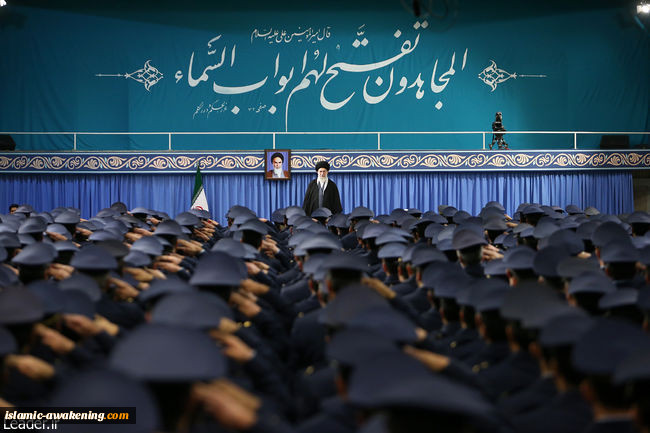 وأفاد موقع الصحوة الاسلامية نقلا عن وكالات الانباء أن قائد الثّورة الإسلامية آية الله العظمى السيد علي الخامنئي التقى صباح اليوم الخميس عدد من قادة وأفراد القوات الجوية لجيش الجمهورية الإسلامية الايرانية بالتزامن مع الذكرى السّنوية للبيعة التاريخية التي قدّمها الطّيارون للإمام الخميني الرّاحل في 8 شباط من العام 1979، وذلك في حسينية الامام الخميني (ره) في العاصمة طهران.