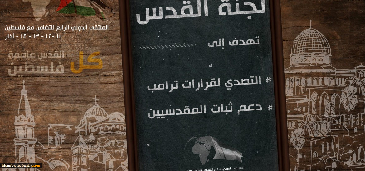 تُطلق الحملة العالمية الملتقى الدولي الرابع للتضامن مع فلسطين، تحت شعار “كل القدس عاصمة كل فلسطين” مساء يوم الأحد 11 آذار 2018، في العاصمة اللبنانية بيروت، بحضور 350 ناشط ومنظمة مجتمع مدني.