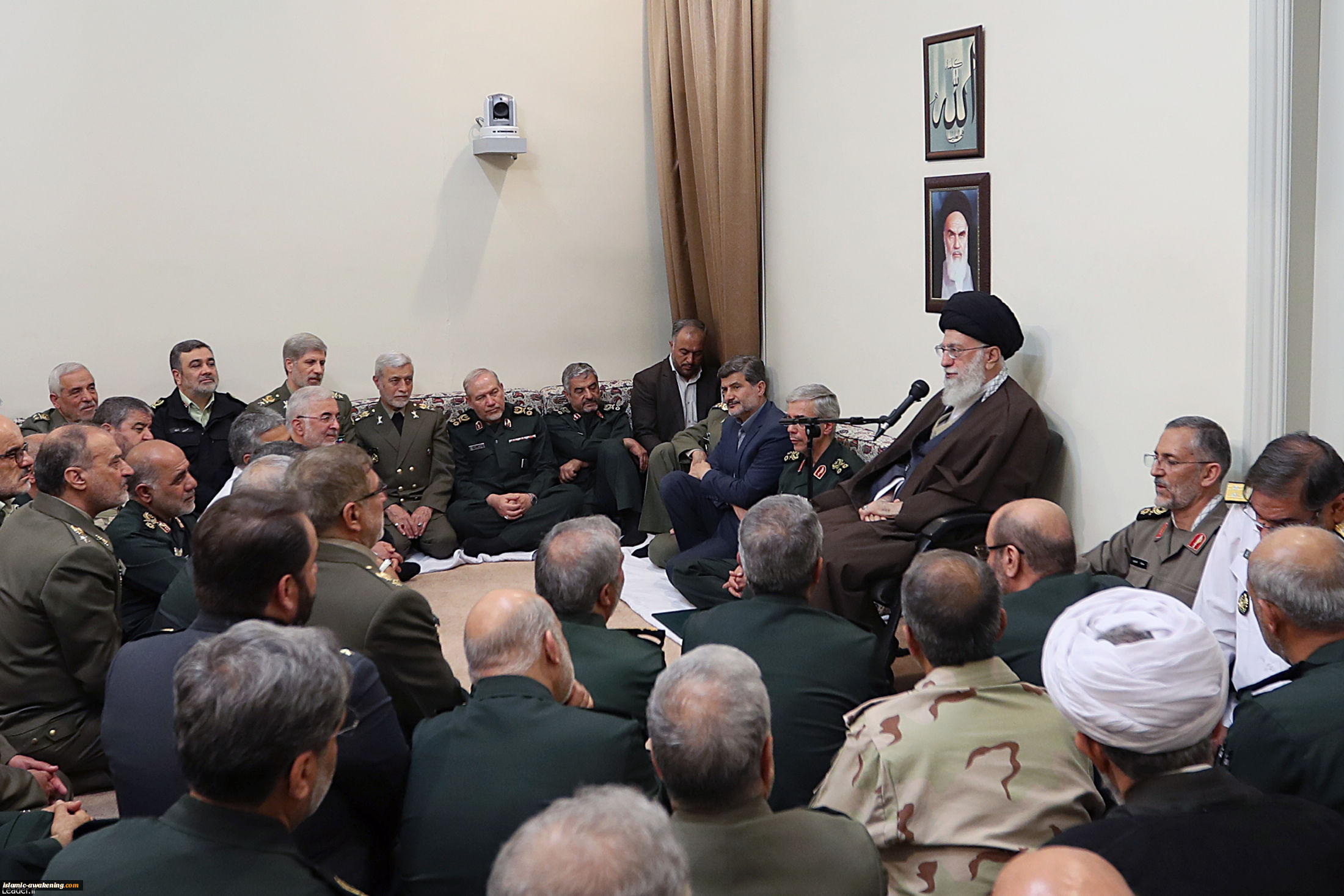 واعتبر قائد الثورة ان  المرحلة الراهنة  هی"مرحلة عزة للجمهوریة الاسلامیة الایرانیة"، مؤکدا " ان سبب الهجمات الحالیة غیر المسبوقة ضد النظام الاسلامی هو القدرة المتزایدة لهذا النظام ، لأن الاعداء شعروا بالخطر الشدید من هذه القدرة المتزایدة فکثفوا من هجماتهم.