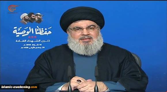 نصر الله: العدوان الثلاثی فشل فی تغییر المعادلة لصالح إسرائیل وبعض الدول الإقلیمیة وأخفق فی هز معنویات الشعب والجیش فی سوریا ولم تساعد مقاتلی المعارضة..