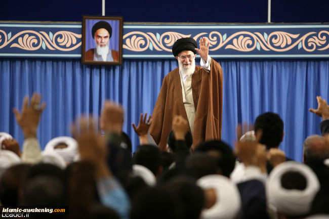 وتطرق سماحته خلال کلمته الى الصحوة الاسلامیة وزیادة نسبة الالتفات الى الدین الاسلامی علی النطاق العالمی مؤکداً على أنّ شباب عالمنا الیوم لدیهم الکثیر من الاسئلة یتطلعون الى الحصول على ردّ ذی طابع اسلامی علیها وهذا ما یحثنا على تسریع عملیة التطور العلمی فی الوطن الاسلامی لتعتلی الامة الاسلامیة مرة اُخرى قمة الاقتدار العلمی والحضاری کی لایتجرأ أعداء الاسلام والأمریکیین على إلزام زعماء الدول الاسلامیة بقرارات أو إرغامهم على تنفیذ أو عدم تنفیذ أوامر.