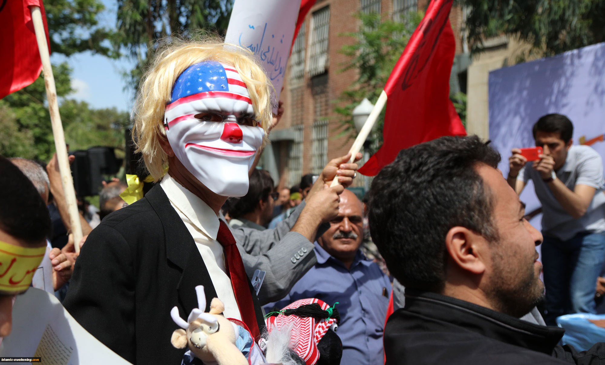 ورفع المتظاهرون اعلام ایران وحزب الله وأخرى فلسطینیة، ولافتات تندد بالسیاسات الامریکیة والاسرائیلیة کما هتفوا دبشعارات مناهضة لاسرائیل وتطالب بوقف الجرائم بحق ابناء الشعب الفلسطینی.