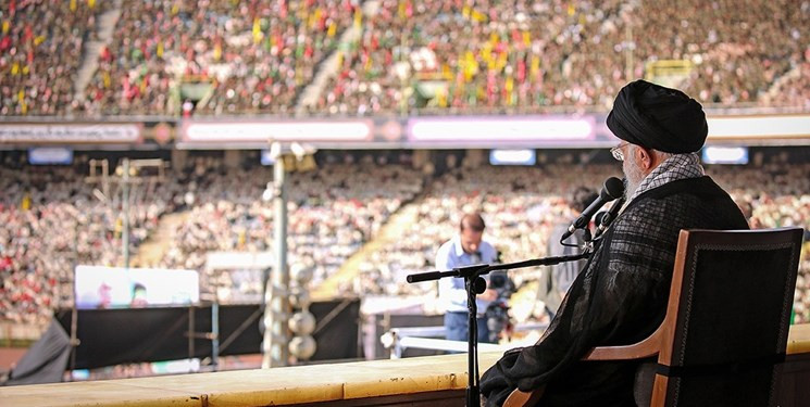 وأفاد موقع الصحوة الاسلامیة نقلا عن وکالةمهر للانباء انه قائد الثورة بدأ کلمته صباح الیوم الخمیس فی ملتقى بمشارکة مائة ألف من اعضاء قوات التعبئة فی ملعب "آزادی" بطهران.