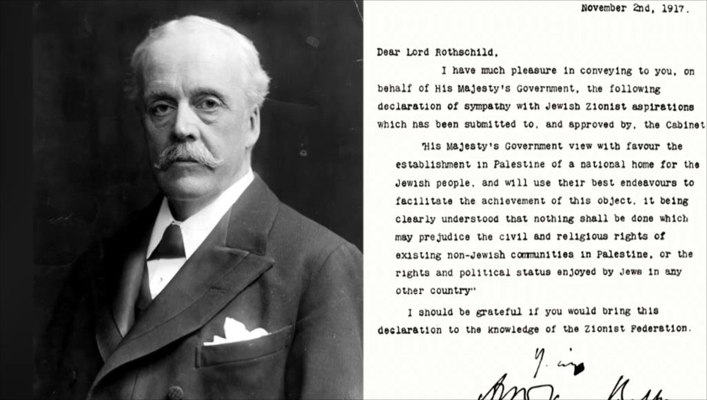 أن بریطانیا بموجب هذا فی 2 نوفمبر/تشرین الثانی 1917، وهو نفس الموعد الذی احتلت فیه القوات البریطانیة مدینة بئر سبع الفلسطینیة، وفی یوم 8 دیسمبر/کانون الأول1917 احتلت القوات البریطانیة القدس، وفی سبتمبر/أیلول 1918 استکملت بریطانیا احتلال باقی فلسطین واقتطعتها من الجسم السوری الکبیر، وظلت السلطات البریطانیة فی حکم فلسطین لمدة عامین، انتهت 1920 حین أعطى مجلس الحلفاء بریطانیا حق الانتداب على فلسطین وهو الأمر الذی اعتمدته عصبة الأمم فی العام 1922، وأخذت السلطات البریطانیة على عاتقها تهیئة فلسطین کی تصبح "وطناً قومیاً للیهود".