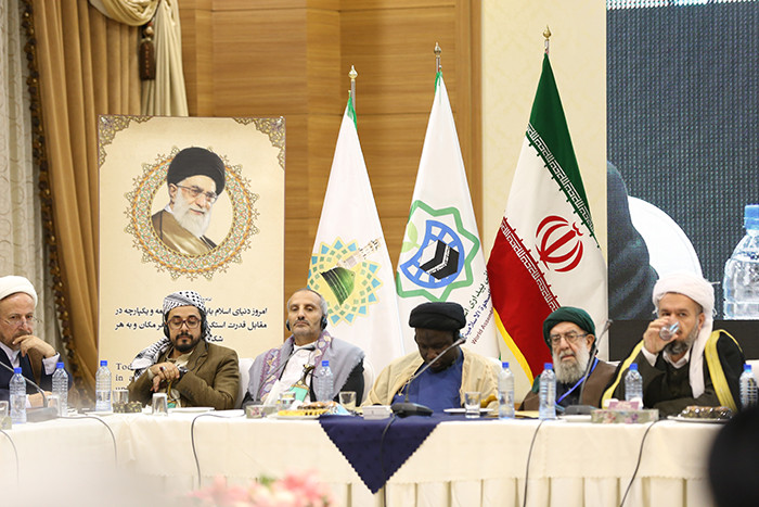 2- إن كل الجرائم التي تتعرض لها الشعوب المظلومة في المنطقة والعالم و في غرب آسيا بوجه خاص، سببها دعم نظام الإستكبار العالمي بزعامة أمريكا للكيان الصهيوني و الأنظمة الرجعية العربية في المنطقة و ذلك بهدف الحيلولة دون انتشار الاسلام المحمدي الأصيل و توفير الأمن للكيان الصهيوني المشؤوم الذي هو في طريقه إلي الزوال. نحن المشاركين نصرّ علي ضرورة فضح هذه المؤامرة الغربية- العبرية- العربية المشتركة و إذ نشجب هذه المؤامرة نؤكد علي ضرورة إن تتحلي الشعوب و الدول المتحررة بالوعي و اليقظة حيال هذه المؤامرات و الإعتداءات التي يحيكها و يقوم بها أعداء الإسلام و أعداء البشرية.