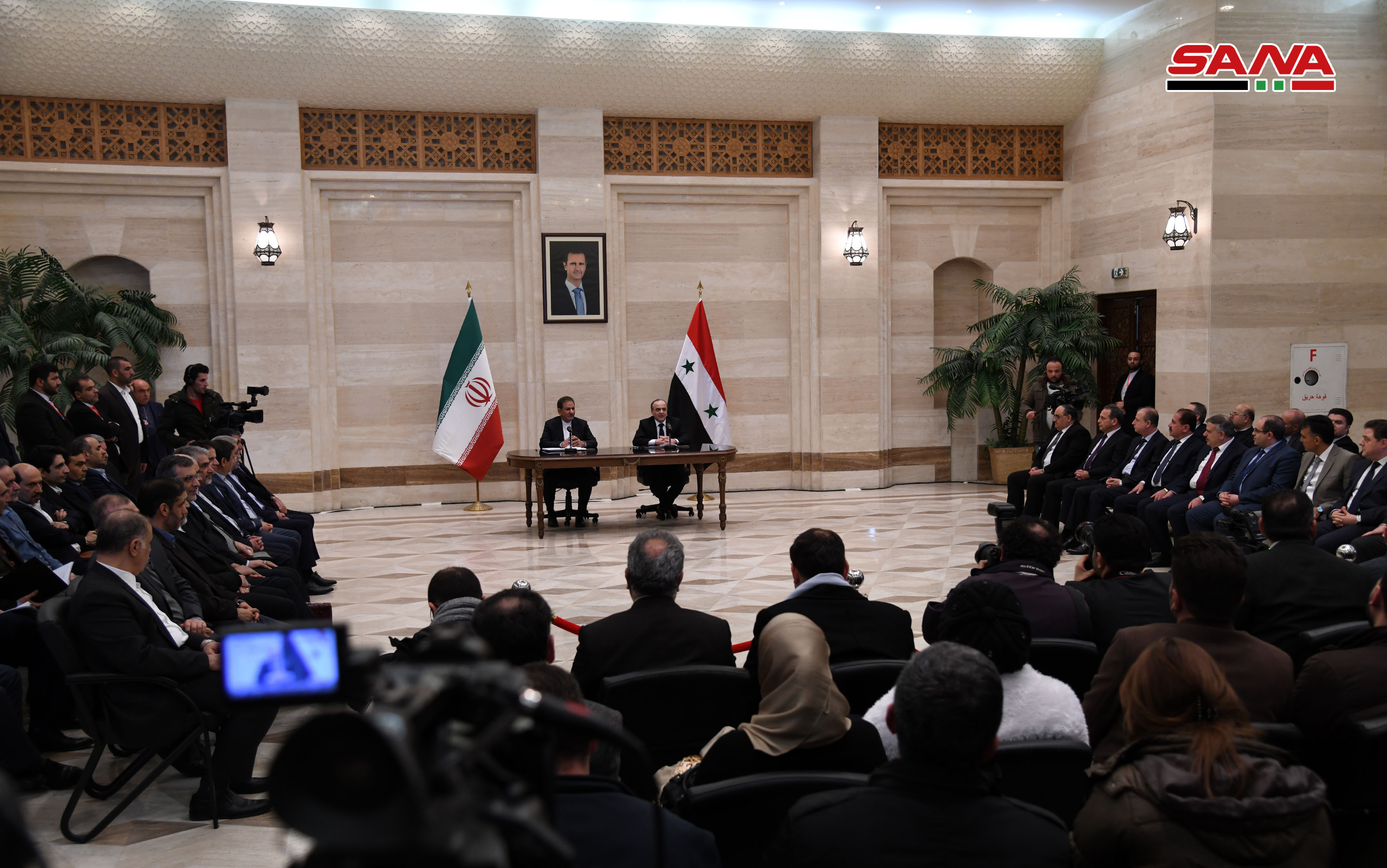 وبین الدکتور جهانغیری فی مؤتمر صحفی مشترک مع رئیس مجلس الوزراء المهندس عماد خمیس عقب اختتام اجتماعات الدورة 14 من أعمال اللجنة العلیا السوریة -الإیرانیة المشترکة التی أثمرت توقیع 11 اتفاقیة أنه کما کانت إیران إلى جانب سوریة فی حربها ضد الإرهاب ستکون إلى جانبها فی ظل الحصار الاقتصادی الذی فرض على الشعب السوری وستساهم بشکل فعال فی مرحلة إعادة الإعمار، مشیراً إلى أن اجتماعات اللجنة الیوم هی أکبر دلیل على حرص الجانبین على تطویر مجالات التعاون بینهما على کل الأصعدة.