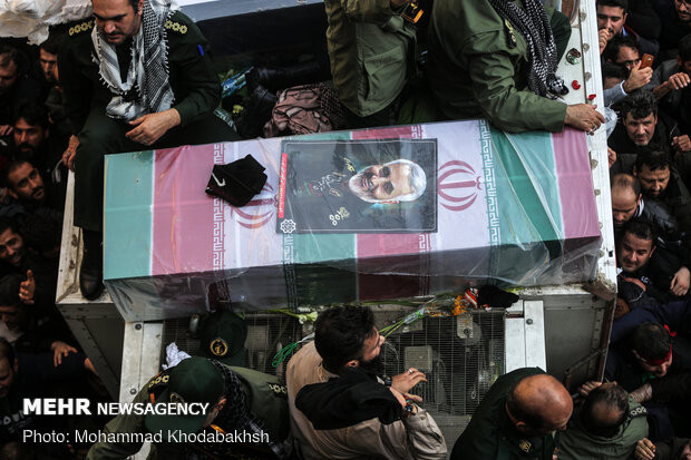 ومن طهران تم نقل جثمان الشهید القائد سلیمانی والشهید بورجعفری الى کرمان وکذلک نقل جثمان الشهید ابومهدی المهندس الى ابادان لیشیع الى حدود شلمجة الدولیة ومنها الى مدینة البصرة العراقیة.