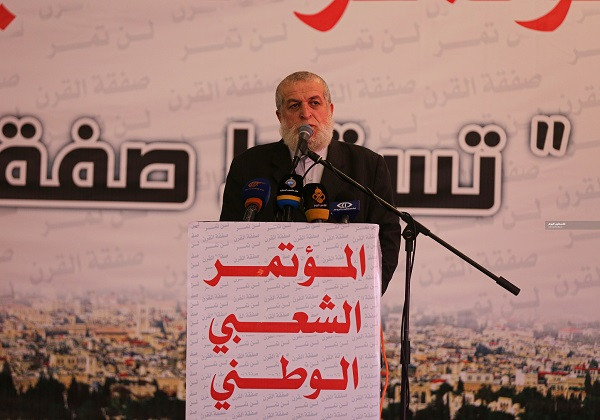 وجاء ذلك خلال مؤتمر شعبي ووطني في قطاع غزة نظمته القوى الوطنية والإسلامية في قطاع غزة تحت عنوان "تسقط صفقة القرن"، وقد شارك في المؤتمر كافة الفصائل والقوى الوطنية من مؤسسات حقوقية وعلماء ودعاة.