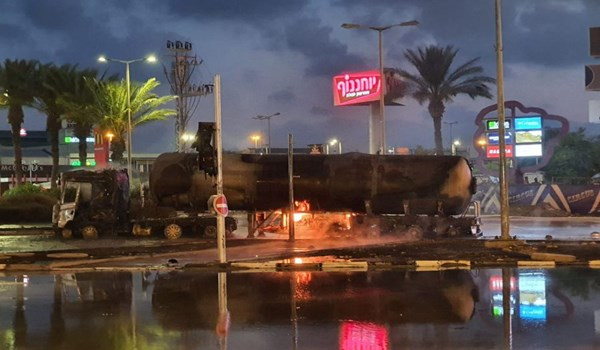 اغلاق شارع في مدينة حيفا المحتلة بعد انفجار شاحنة نقل صهريج غاز+صور