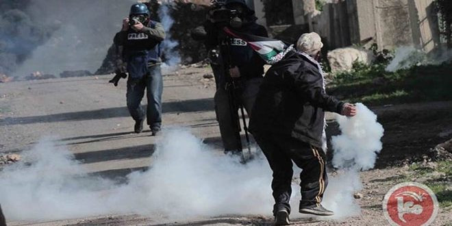 وأصیب عشرات الفلسطینیین أمس جراء قمع قوات الاحتلال مظاهرة قریة کفر قدوم الاسبوعیة المناهضة للاستیطان.