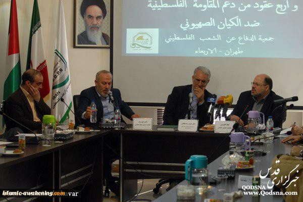 به گزارش سایت بیداری اسلامی «نشست تخصصی انقلاب اسلامی برآیند چهار دهه حمایت از مقاومت ضد صهیونیستی» به مناسبت سالگرد پیروزی شکوهمند انقلاب اسلامی ایران از سوی جمعیت دفاع از ملت فلسطین و با همکاری خبرگزاری قدس با حضور نمایندگان جنبش حماس و جهاد اسلامی و همچنین رئیس اداره اول خاورمیانه و شمال آفریقای وزارت امورخارجه برگزار شد.